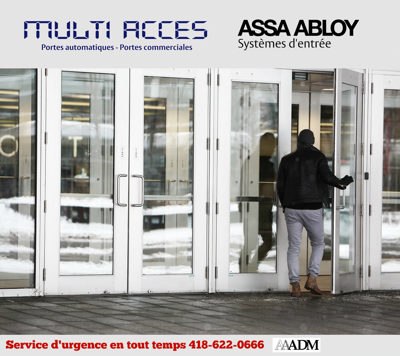Nous disposons de techniciens compétents et certifiés AAADM. Ils ont les connaissances et les ressources qui leur permettent d'entretenir et de réparer rapidement nos produits, ainsi que ceux de marques concurrentes. En outre, ils sont toujours disponibles 24 heures sur 24. MULTI ACCES offre aussi une gamme complète de programmes de modification et de remise en état des portes manuelles et automatiques.